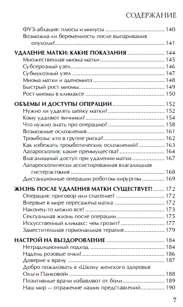 Я бы рекомендовала прочесть эту книгу тем женщинам, которым предстоит операция по поводу миомы матки. Вам станет доступной информация о последних разработках в мире операционных технологий: использовании гелей, предотвращающих развитие спаек, применение роботов-хирургов и пр.