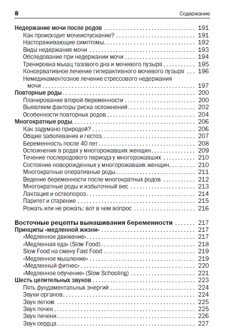 В четвертой главе мы обсудим роды и послеродовое восстановление. Вы узнаете о том, как избежать преждевременного излития околоплодных вод и кровотечения. В этом разделе я расскажу об особенностях течения домашних и водных, а также повторных и многократных родов.